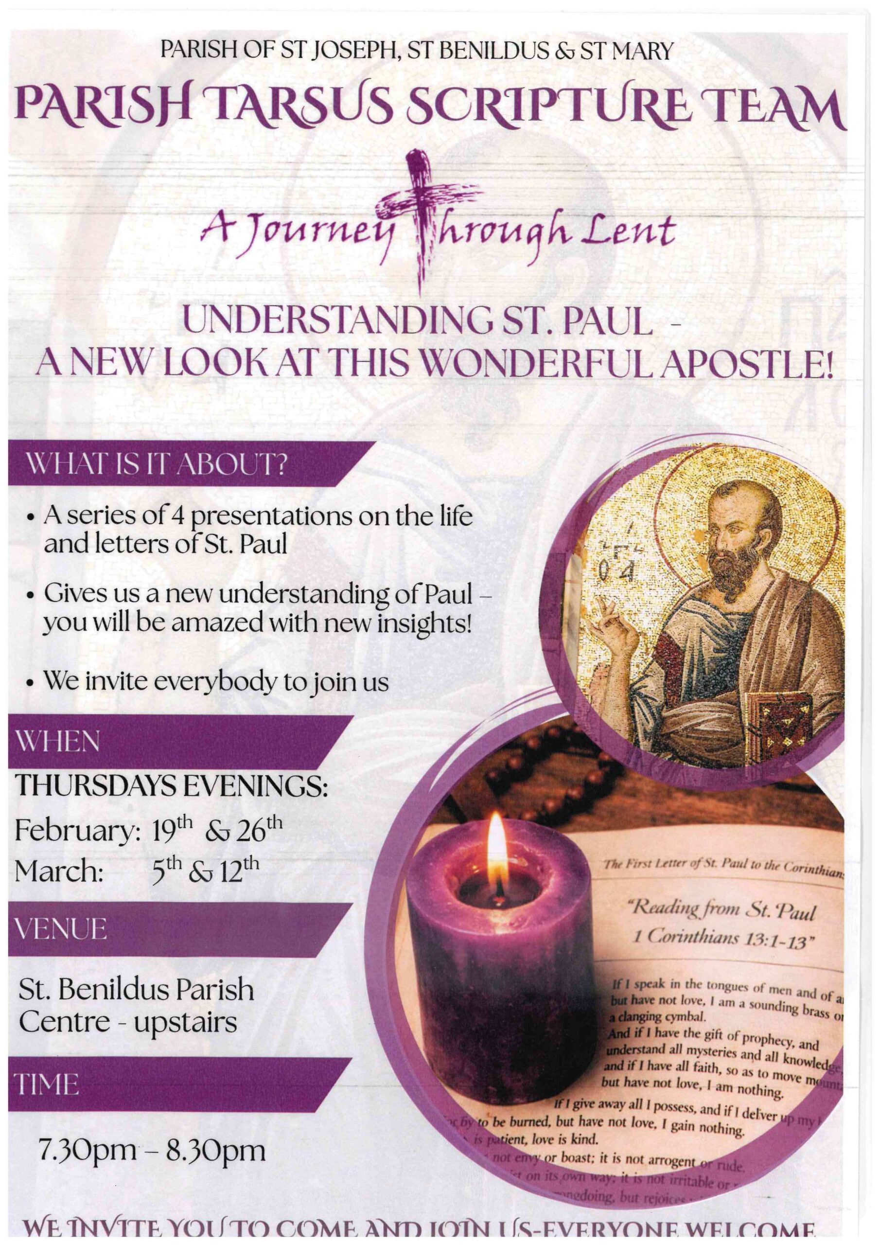 A Journey through Lent: Parish Tarsus Scripture Team – St Joseph & St Benildus Parish Centre