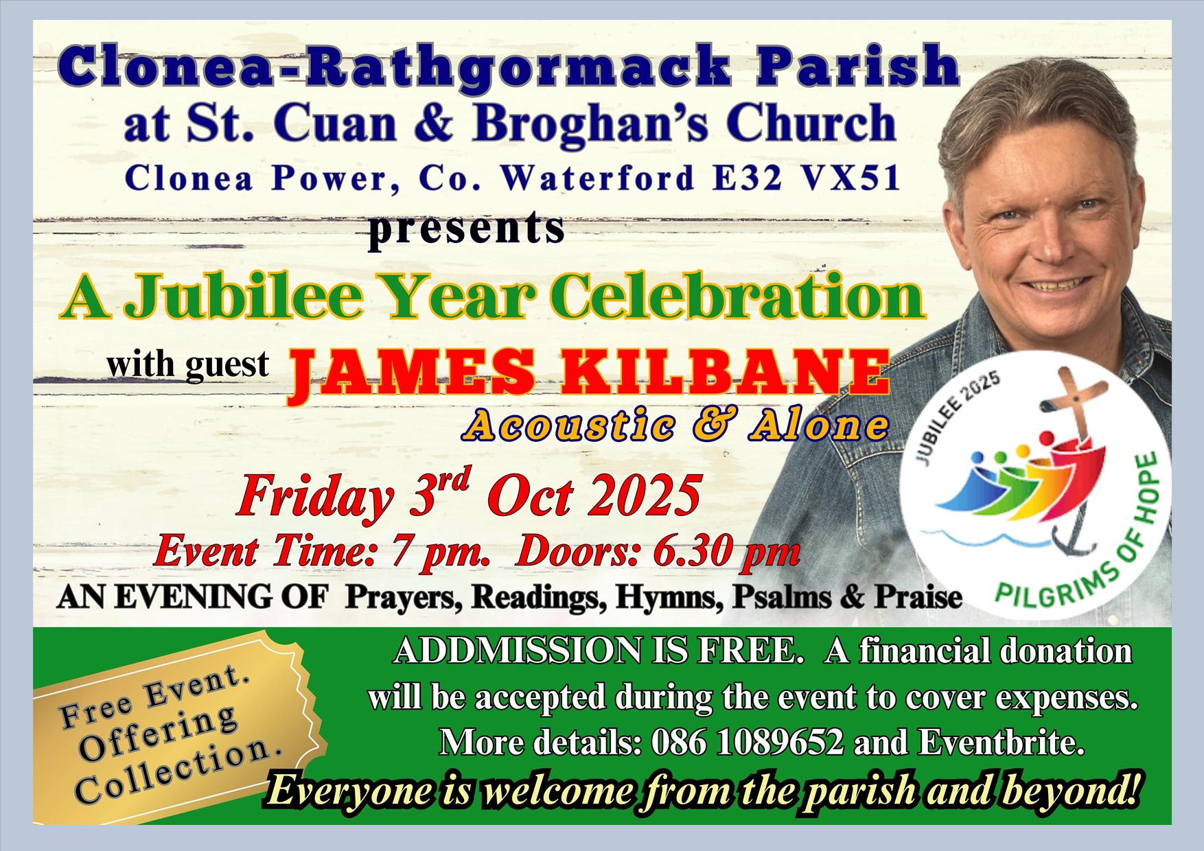 - Clonea-Rathgormack Parish Evening of Music and Prayer with James Kilbane: Fri 3rd October
